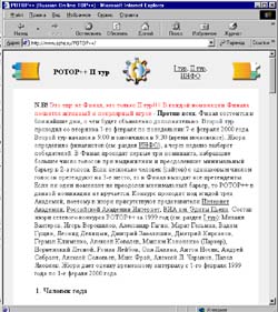 В номинации "Хард'н'Софт Сайт года" на третьем месте (то есть выходит в финал) стоит Фонд Эффективной Политики. Крутой хард этд софтный сайт. Интересно, чего члены жюри подразумевали в данном случае под термином "Хард энд софт"? Под хардом, как я понял, они имели в виду усилия ФЭП-а перед выборами мэра Москвы доказать, что Лужков - преступник (мы все помним, как перед самыми выборами некоторые баннерные сети были завалены баннерами с подобным текстом, которые я тщетно пытался вывести со своего сайта; впрочем, гениальные баннеры "Вы - бор один, бор один" я тоже извести не смог), а под словом "софт" подразумевались те проценты голосов, которые Кириенко, поддерживаемый ФЭП-ом, получил на выборах мэра? Может быть, может быть. Только в этой компании как-то очень странно смотрятся действительно "Хард'н'Софт"-ные и очень популярные сайты - dz-online и iXBT. Я не знаю - уютно ли им от такого соседства?