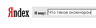 Кроме того, Яндекс теперь научился работать с запросами на естественном языке. Например, интересует вас вопрос - "что такое оксиморон". Вместо того, чтобы извращаться самым противоестественным образом, пытаясь сформулировать свой вопрос так, дабы немедленно получить ответ, вы просто заходите на Яндекс и вводите вопрос так, как он уже прозвучал: