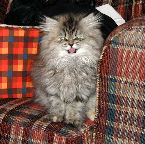 Напоследок, очередная фотография кошки Нюси. У нее в глазах так интересно отблескивает вспышка, что Нюся выглядит каким-то жутким зверем, а не маленькой скромной кошечкой. Впрочем, я уже говорил, что Нюся - это помесь крокодила с бегемотом, так что фотография только раскрывает ее внутреннюю сущность.