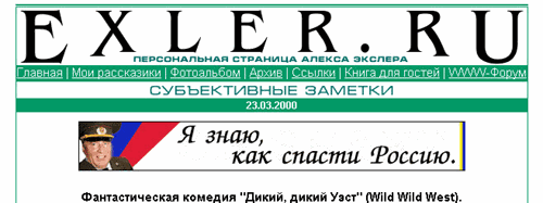 Загляните, поинтересуйтесь. Очень забавный и приятный сайт. Особенно раздел "Как самому нарисовать Путина".