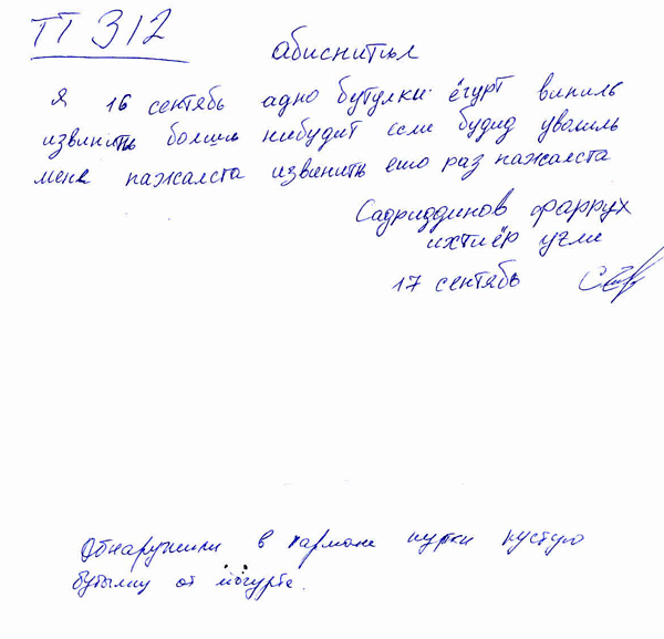 А суровые у них там нравы - нашли в кармане выпитый йогурт - пиши объяснительную. Однако! 😄