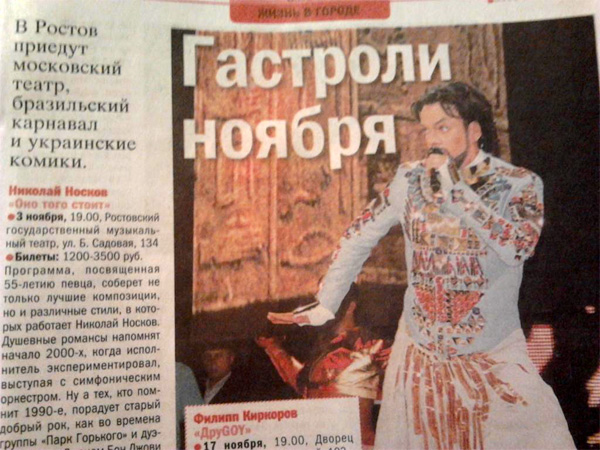 К кому отнесли Киркорова ростовские газетчики, сказать трудно. Но к кому он сам себя относит - похоже, с этим все ясно. Иначе зачем он назвал свою программу "ДруGOY"? Значит, гой по прозванию Дру. Как-то так.