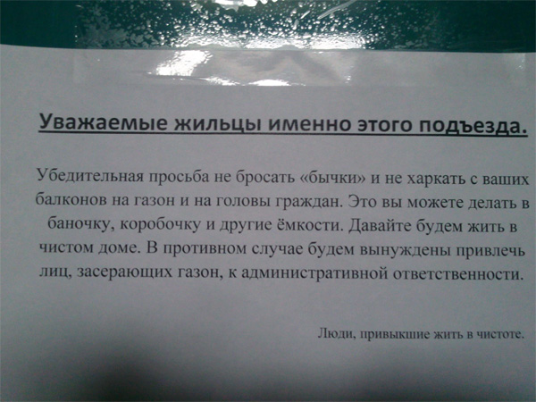 Люди именно в этих подъездах привыкли жить в конкретной чистоте.