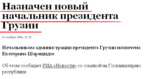 Деловая газета "Взгляд", рассказал Евгений, очень по-деловому сообщила о назначении нового начальника президента Грузии.