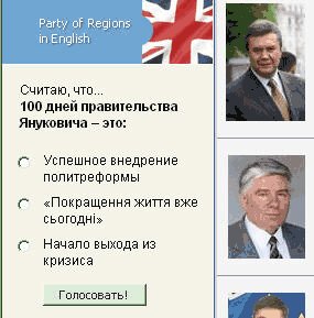 Оказывается, не только KM.ru изобрели "голосование" из одного варианта ответа. На сайте Партии регионов Украины, как рассказал Дмитрий, также зажигают вполне конкретно. Точнее, отжигают.