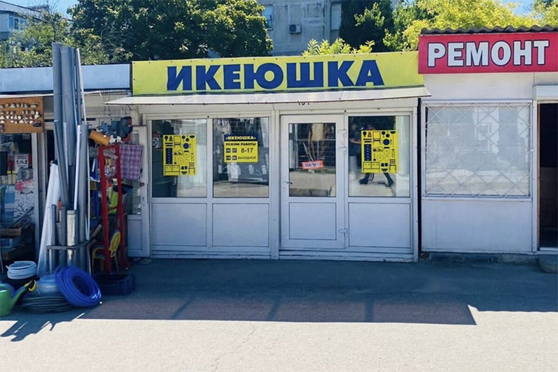 ИКЕА из России ушла, грустит кот Бублик. Но осталась "Икеюшка"! Что там, спрашиваете, продается? Гвозди продаются. Струмент какой-то. А вы чего хотели? Стол LAGKAPTEN, софу FRIHETEN или комод GREÅKER? Нет, это теперь так не работает. Теперь только шурупы Михалыч и стамески Аграфена.