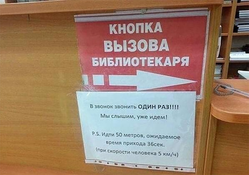 Библиотекарь явно в физике разбирается. Ну и не старый ещё - может "крейсерскую" скорость по коридору развить. 😄