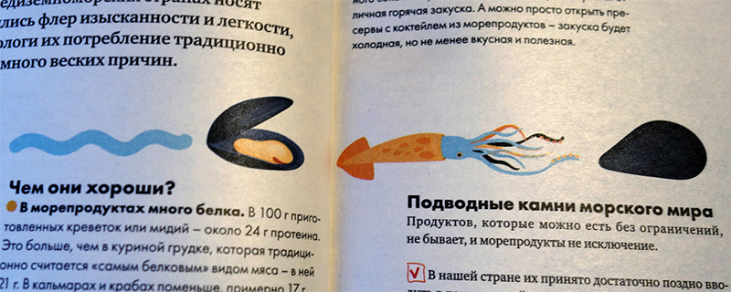 Заметили там голубую волнистую линию? Засетили? Хорошо. Ещё там справа есть закрытая раковина а чуть левее неё - щупальца кальмара. Заметили закрытую раковину и щупальца?