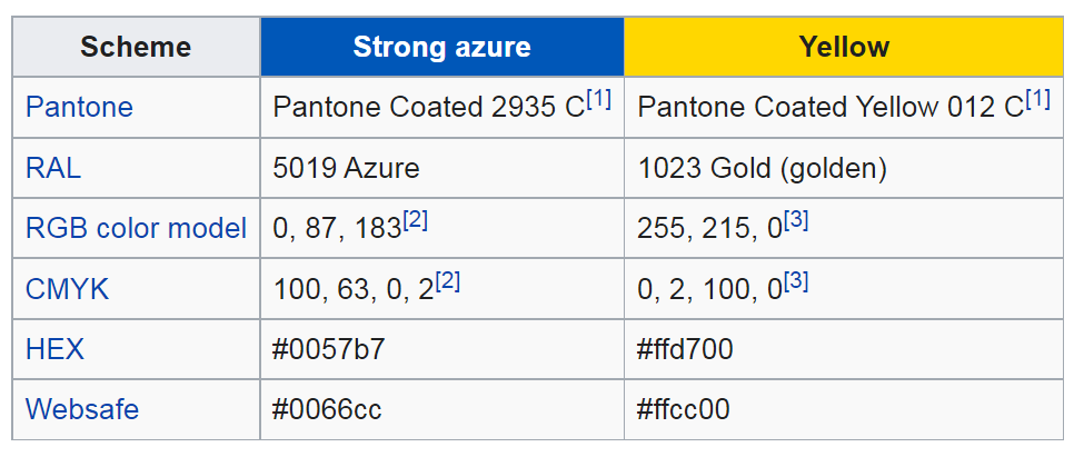 кстати, цвета все "синие", но не одинаковые. Какой точно у Украины цвет желтого и синего, в RGB чтобы точно вбивать, а не примерно на глазок.?