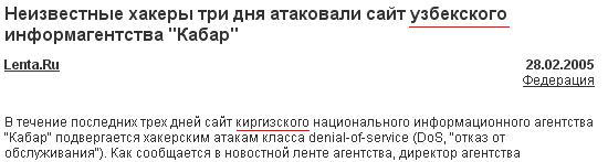 Атаковали хакеры сайт узбекского информагентства, атаковали, сокрушается Nikolay, - и доатаковались! Теперь агентство киргизское! Захватили, сволочи!