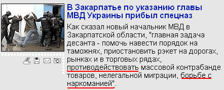 Спецназ теперь следит, сообщил Gennadiy Poryev, чтобы не было никакой борьбы с наркоманией. А то кто на самом деле будет отстегивать, правильно?...