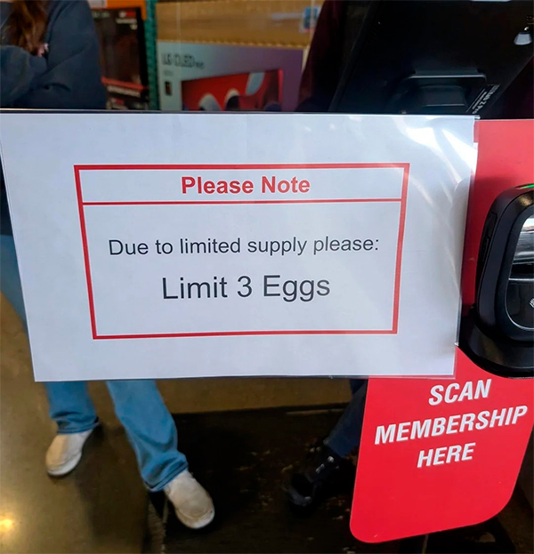 В американском магазине Costco, грустит Nick, яйца теперь по 3 штуки в руки продают, и всё! Но зато удобно - можно сумку с собой не брать. Рассовал по карманам и пошёл.
