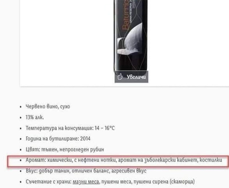 Вино с ароматом зубоврачебного кабинета - это класс.