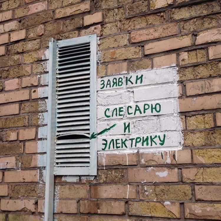 "Вход в КГБ закрыт на ремонт. Стучать по телефону.""