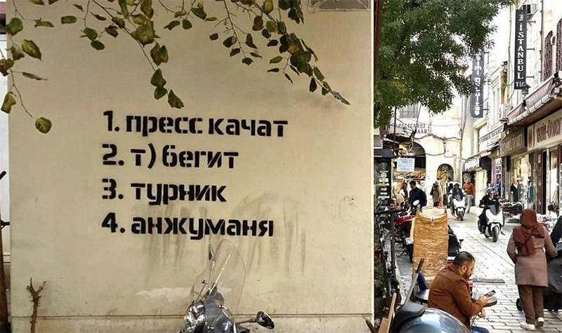 пресс качат и анжуманя - это же легендарный режим дня от безымянного качка. В данном случае просто решили увековечить. Так задумано