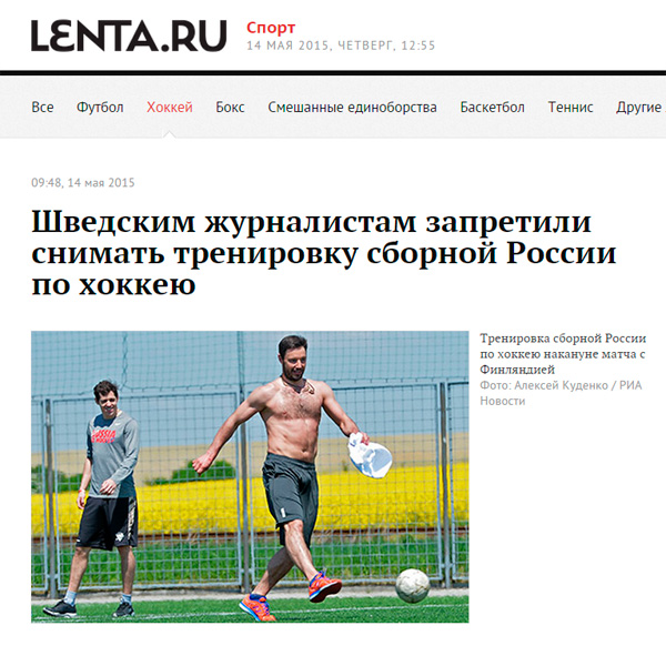 Шведским журналистам запретили снимать тренировку российских футболистов"... "Потому что они потом выкладывают видео в интернет, сопровождая смешными комментариями, - пояснили спортивные функционеры". Так, наверное?