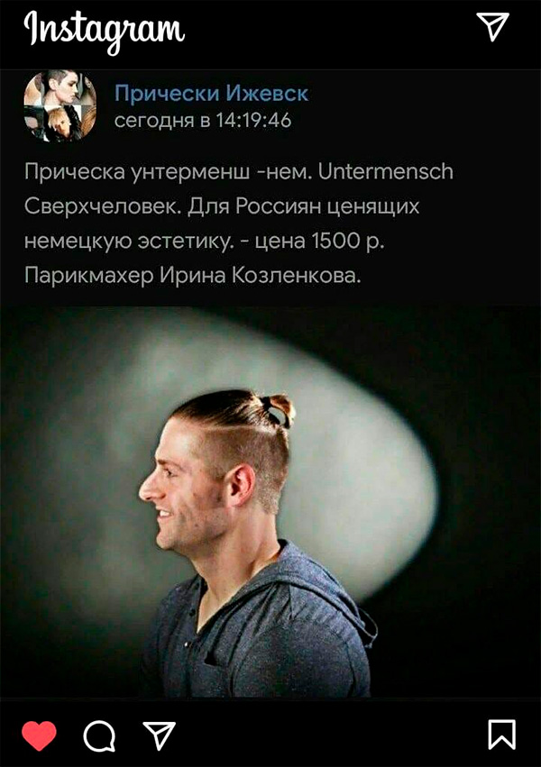 Ну что ты сделаешь с Ириной Козленковой, вздыхает Мират? Слово-то - красивое, унтерменш! Звучит мужественно! Наверняка - сверхчеловек за 1500 рублей! Что особенно пикантно - для ценящих немецкую эстетику национал-социализма!
