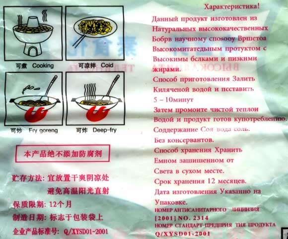 Ten Arrows купил китайского соевого мясца. Но, как порядочный покупатель, поспешил ознакомиться с инструкцией по употреблению: