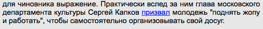 Министерство культуры, вздыхает Элина, в действии. Может, его уже и правда пора переименовать в "Хуячечную"? Ну, чтобы соответствовать высочайшему культурному уровню.