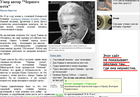 Особенно фраза насчет неуместной рекламы здесь уместна, считает Максим. Сайт, кстати, "Известия.ру". Может, и до них когда-нибудь дойдет...