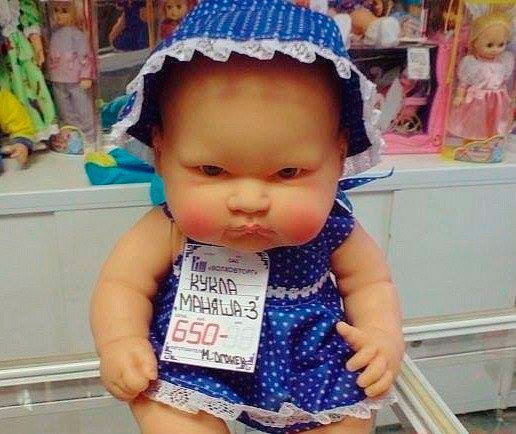 Юрий обнаружил отличную куклу Маняшу-3. Пускай детишки с детства привыкают: именно с таким выражением на них будут смотреть некоторые взрослые.