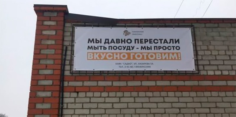 Вот хороший баннизм в исконном значении этого слова (напоминаю, что изначально баннизмом называлась ситуация, когда сочетание двух баннеров, случайно оказавшихся рядом, приобретало дополнительный смысл).