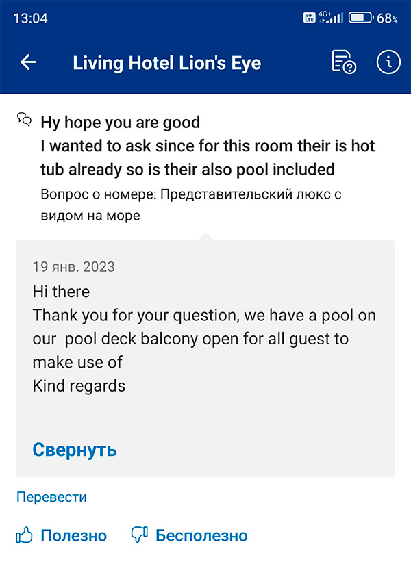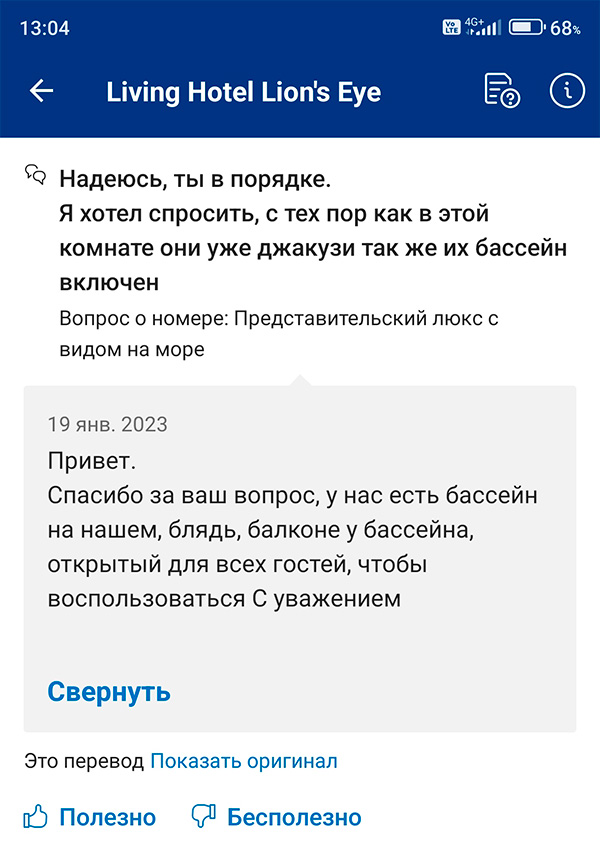 Перевод на русский в Booking, вздыхает Анна, свеж и прекрасен!