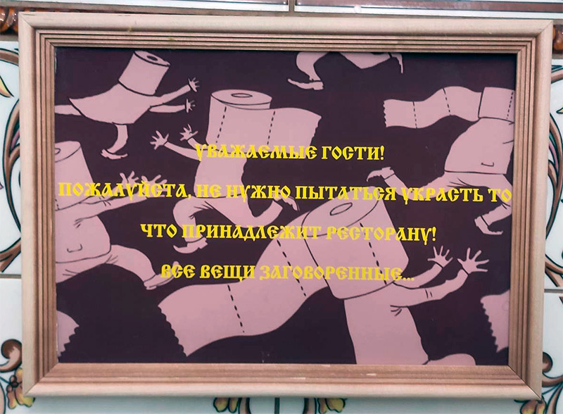 Старый добрый "кто сопрёт - зарежется" по-прежнему работает, рассказала Мария. Это ресторан "Маруся" в Нижнем Новгороде.