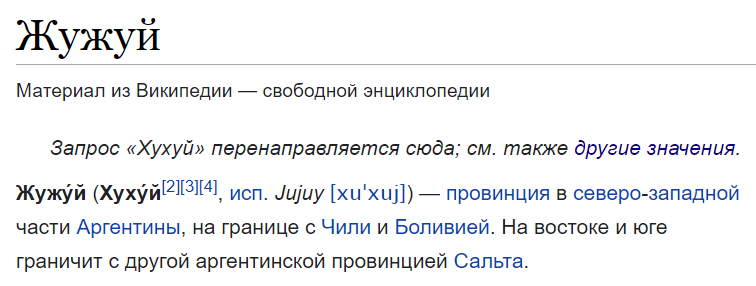 В Аргентине вообще есть Хухуй. По-русски его почему-то стыдливо называют Жужуй, но мы-то с вами знаем )