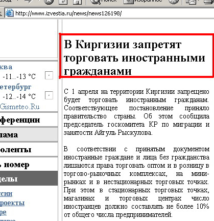 Газет "Известий", рассказал Сергей, запрещат киргиз торговат иностранными гражданами. Никакой граждан иностранный теперь не продат в Кыргыз, честное слово, понимаешь! Только своими торговат! С 9 до 18 в любой времень.