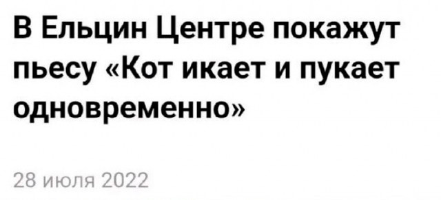 В Ельцин Центре 4 августа Мария Конторович — ученица драматурга Николая Коляды, представит пьесу под названием «Кот икает и пукает одновременно». Постановку покажут в рамках цикла спектаклей-квартирников «Там, короче, как было…». Анонс мероприятия появился на официальном сайте ЕЦ.