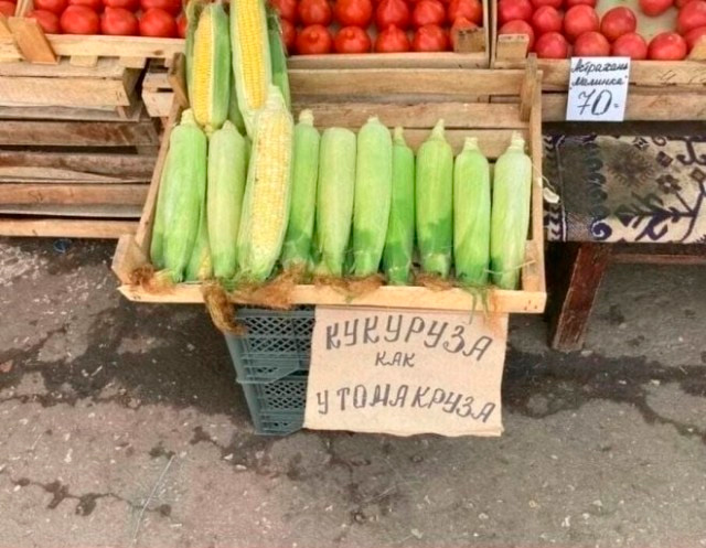 Маркетологу с фото выше нужно учиться у этого народного маркетолога. Кукурузу расхватывают - только так!