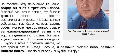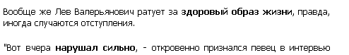На "Днях.ру" так душевно рассказывают об исключительно здоровом образе жизни, который ведет Лев Лещенко, радуется Komskaya Irina, что просто хочется подражать, подражать и подражать до бесконечности!