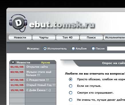 Один из вариантов дизайна для томского музыкального портала "Дебют", рассказал Филиппов Роман, просто-таки радует креативностью мышления создателя...