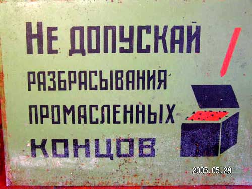 Да, я знаю, что концы - это тряпки для протирки станков и стола для домино. Но и после того как эти тряпки используются для личной гигиены, их все равно не нужно разбрасывать где попало! И концы не нужно разбрасывать! Сохраняй свое рабочее место в чистоте, и рабочее место тебе ответит тем же!