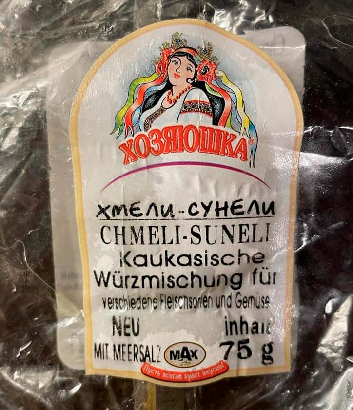 Яркий пример глобализации, радуется Виктор. Приправа кавказская, название на русском, описание на немецком, красивая женщина - украинка.