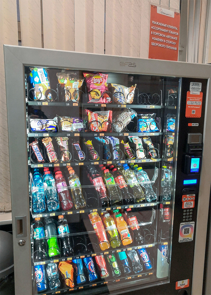Табличка над автоматом гласит, что они изменили ассортимент в автомате в сторону здорового питания. Теперь страшно подумать, что там было до этого...