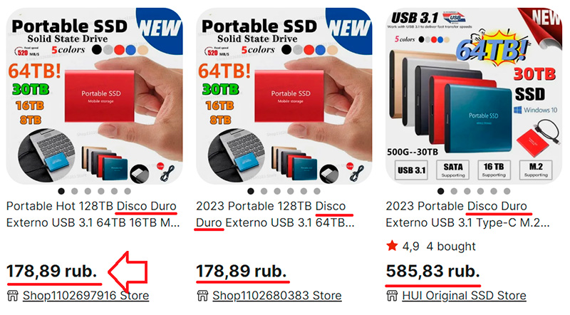 А вот кому китайские жесткие диски, зазывает MadMixture, налетай! 64 ТБ за 179 рублей - недорого же! Ну да, там так и написано - для дураков, которые этому поверят.