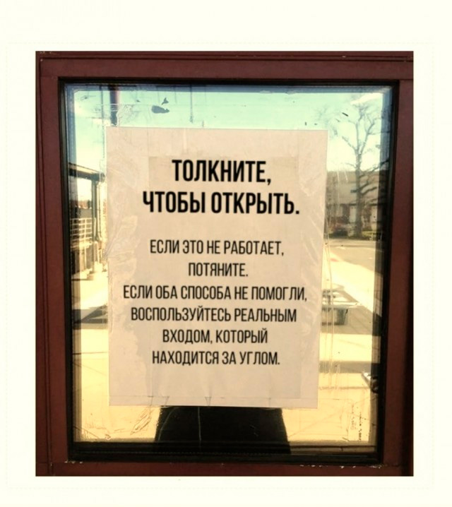 Лучше все-таки “откройте, чтобы толкнуть”. Теги #политика #дефенестрация