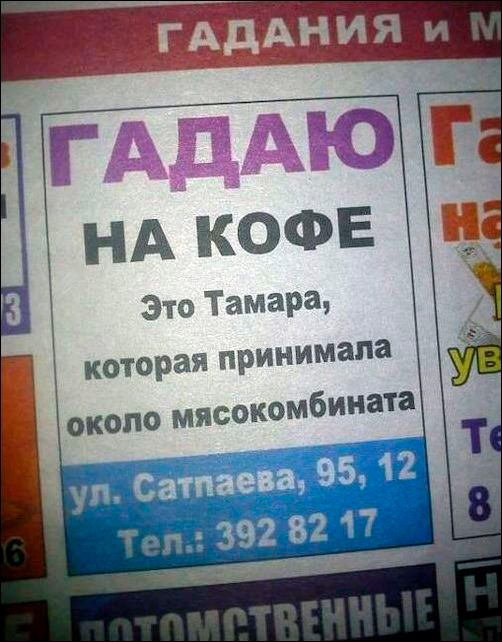 Не потеряй Тамару, которая раньше что-то принимала около мясокомбината.