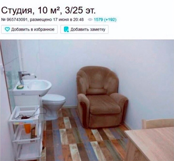 Решение как раз для таких "студий" в 10 квадратных метров. Кстати, не очень понятно, почему тут не совместили унитаз с креслом.