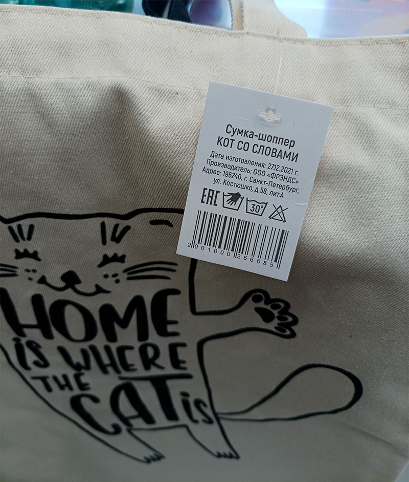 С названием сумки, замечает Антон, как-то не парились совершенно. С другой стороны, что может быть лучше кота со словами?