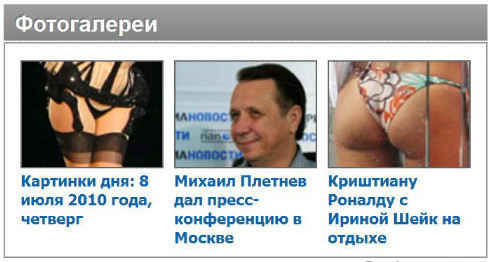 Сайт "Комсомольской правды", рассказал Борис, всегда радует разделом "Сиськи и жопы", который они из скромности называют "Фотогалереи". А вот с чего вдруг туда затесалось лицо Плетнева - непонятно. Видать, по недосмотру.