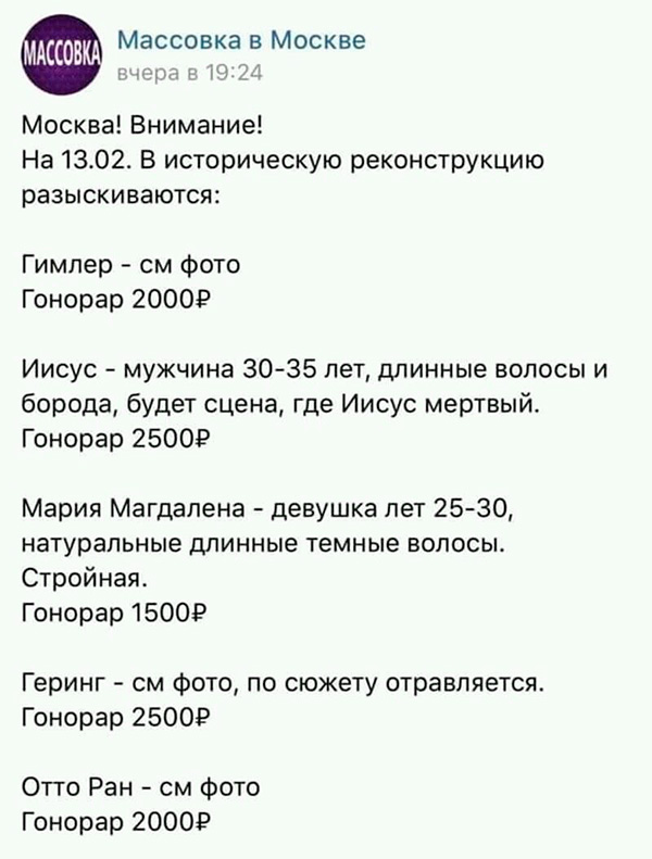 А коту Бублику хотелось бы понять, в какой именно исторической реконструкции встречаются Иисус, Мария Магдалена, Гимлер, Геринг и Отто Ран?