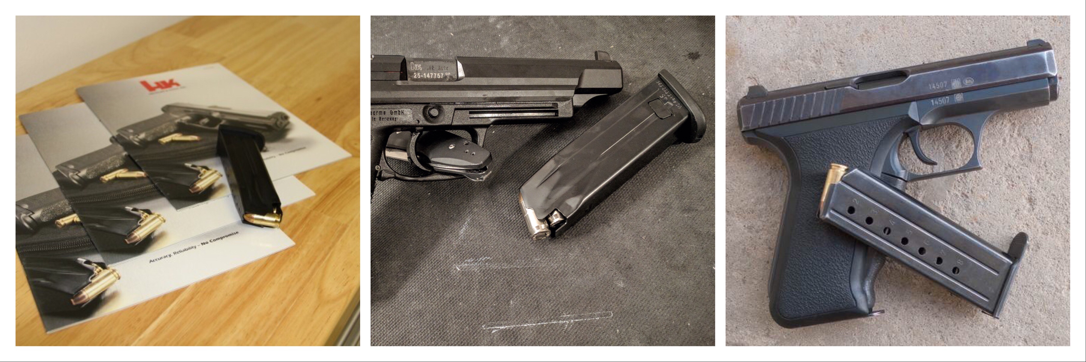 История H&K и неправильно заряженных патронов берёт своё начало в 2004 году, а конкретнее с выставки Shot Show того года. Дело в том, что для той выставки H&K напечатала рекламные брошюры, на обложке которых и красовался пистолет USP с магазином, патроны в котором были заряжены задом наперёд.