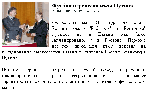 Пришло время россиянам бояться гаранта, сокрушается Serafino. Во время его приезда безопасность не гарантируется никому! Даже футбольным фанатам, уж на что они обычно сами за себя могут постоять...