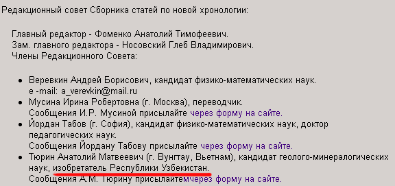 На сайте "Хронология.ру", как рассказал Иншаков Александр Сергеевич, носятся с эпатажными "историками" Носовским и Фоменко (не Николаем, но тоже очень прикольным). Поэтому неудивительно, что в членах редакционного совета встречаются вот такие вот глыбы, такие огромные человечищи, как:
