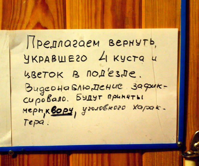 Анна прислала несколько объявлений из очень дружелюбного подъезда.