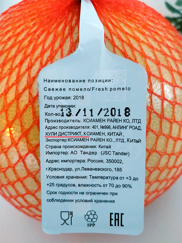 Буквально дня три назад кушал помело от этого Хули дистрикта. Посмотрел на этикетку и запомнил потому что обалденно вкусно было.
