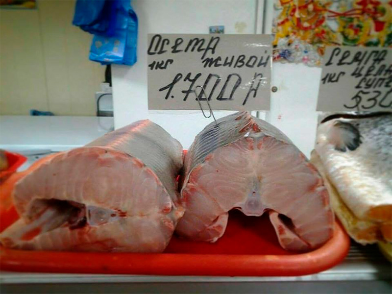 Совсем живой осетр, подтверждает Максим. Дышит и даже похрюкивает.